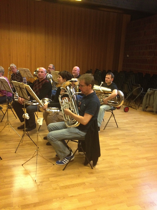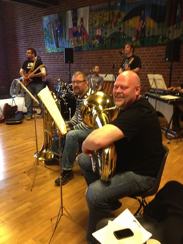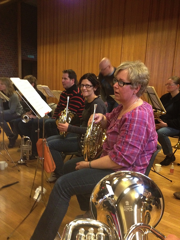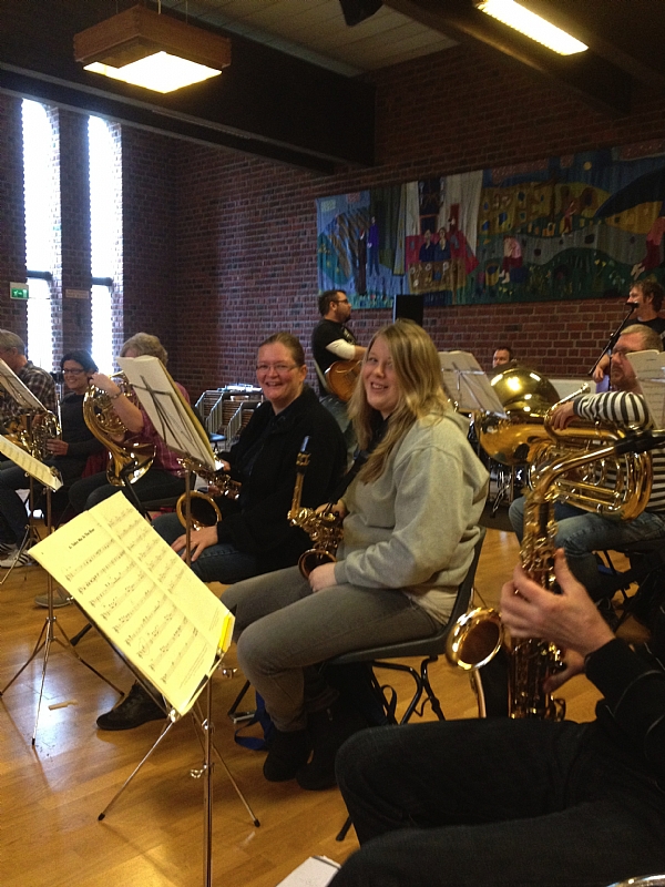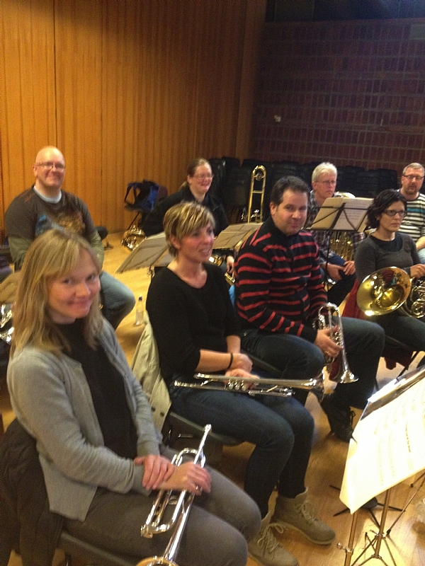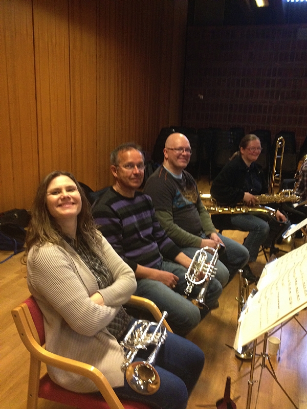 Blide trompetistar. Elin, sissel og Geir. Og ein som har vunne i Lotto på bakerste rekke